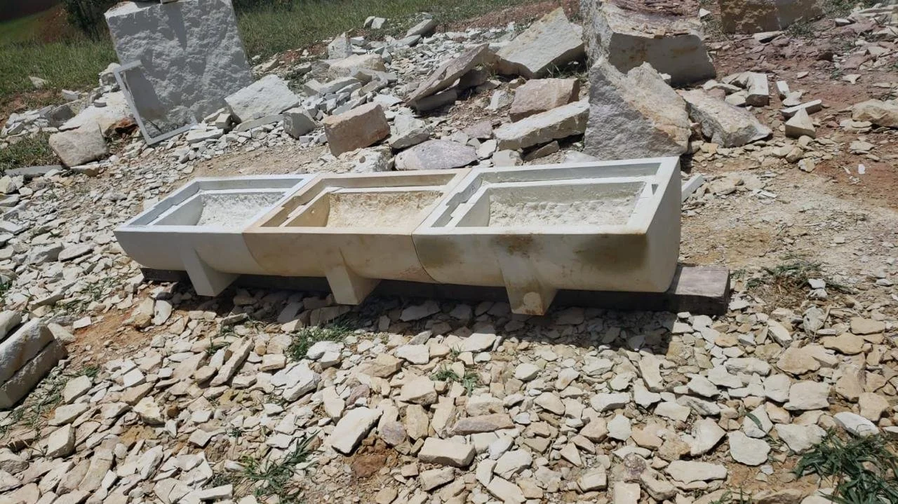 Para contrastar con la monocromía general y las formas sólidas, se introduce piedra Barichara, extraída en Santander. Este material, con su textura rústica y tonos terrosos, se utiliza en piezas de mobiliario artesanal y destaca especialmente en una gran piedra central ubicada en la sala de recepción, que actúa como elemento protagónico y aporta calidez y naturalidad al ambiente.